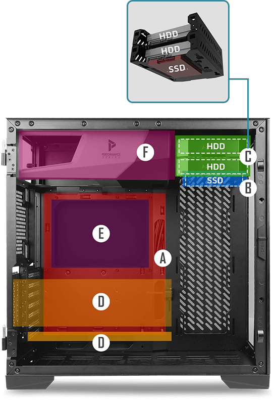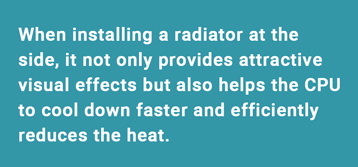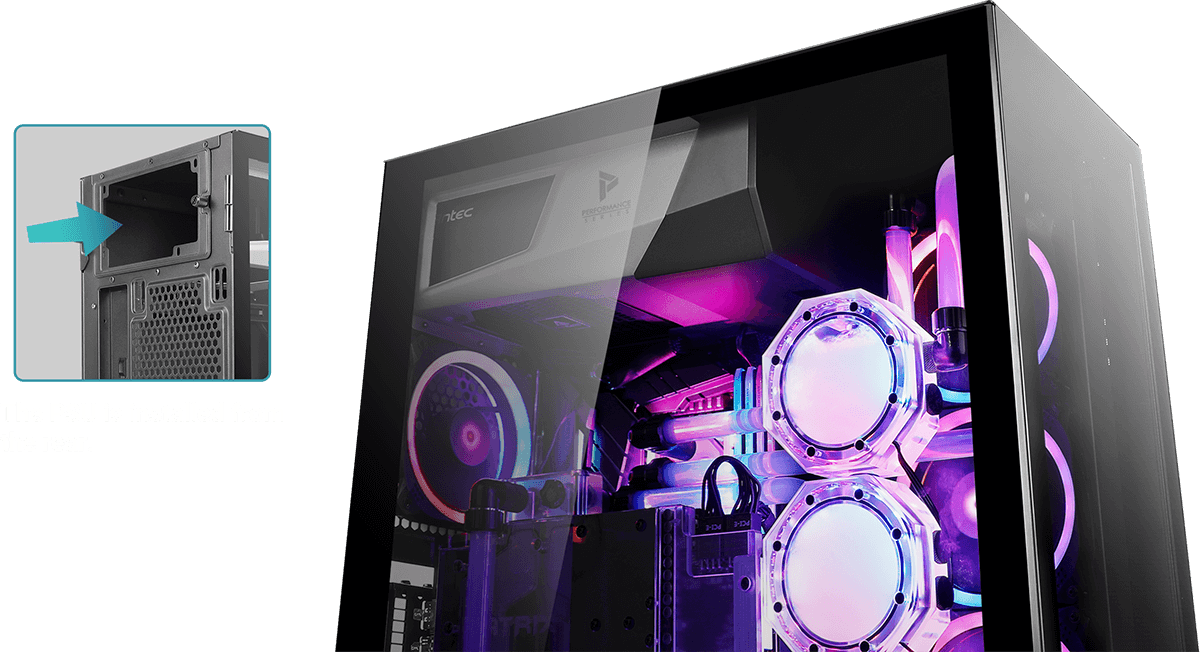 The top-mounted PSU chamber frees the space at the bottom of P120 Crystal, allowing users to have more options to plan their custom water-cooling loop and radiators.
