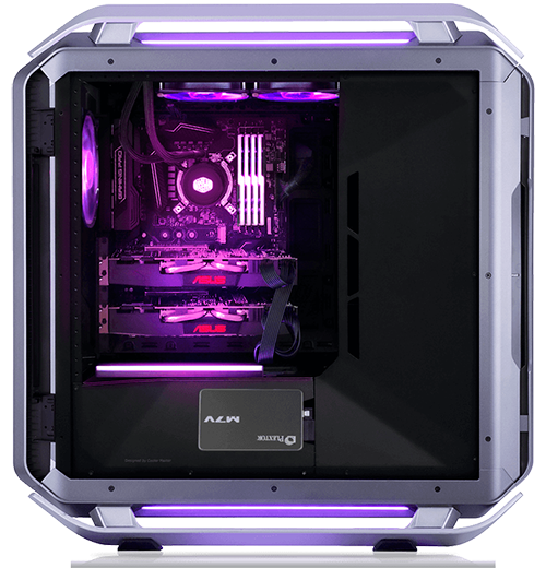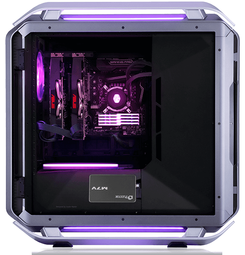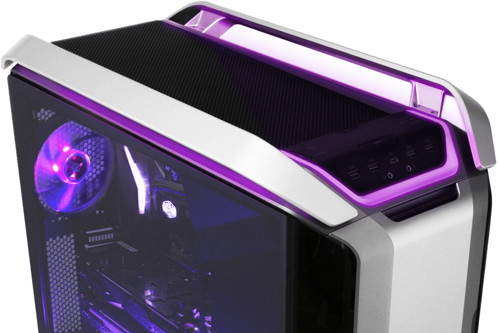 A panoramic tempered glass side panel with two curved edges to offer a wide view inside your PC.