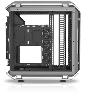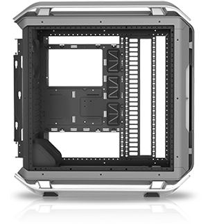 Unique frame design enables regular, chimney effect and inverse layout. Motherboard is removable for installation outside of the case. Removable PSU, storage and cable management covers for ease of cable management with clean builds as a result.