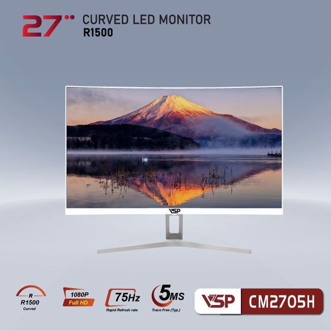 Màn hình Gaming VSP CM2705H Trắng | 27 inch, Full HD, VA, 75Hz, 6ms, cong