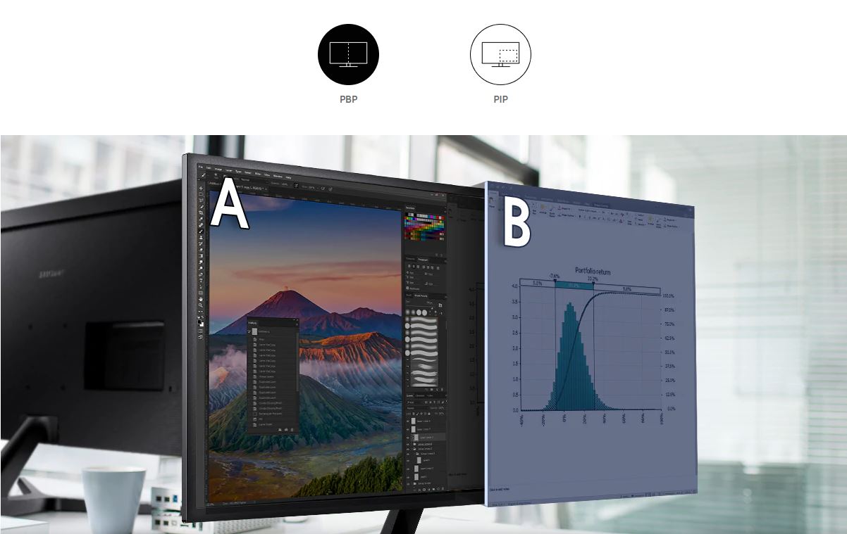 Tính năng Picture-By-Picture (PBP) kết nối và trình chiếu hai nguồn ảnh với độ phân giải gốc lên màn hình. Dễ dàng chạy đa nhiệm, tăng kích thước hình ảnh thứ hai lên 25% màn hình và di chuyển bất cứ vị trí với Picture-In-Picture (PIP).