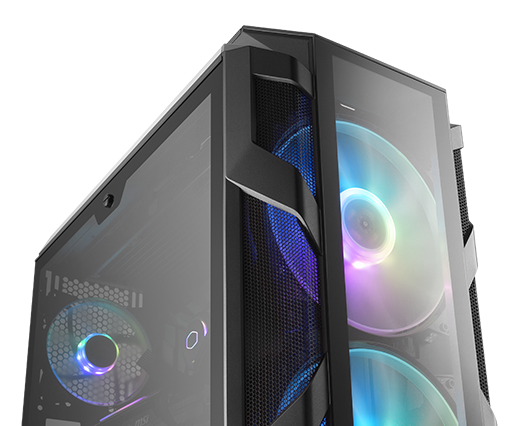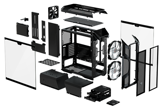 Edge-to-edge glass side panels on both sides, a glass top panel, and a glass front panel offer a clear and comprehensive system view.