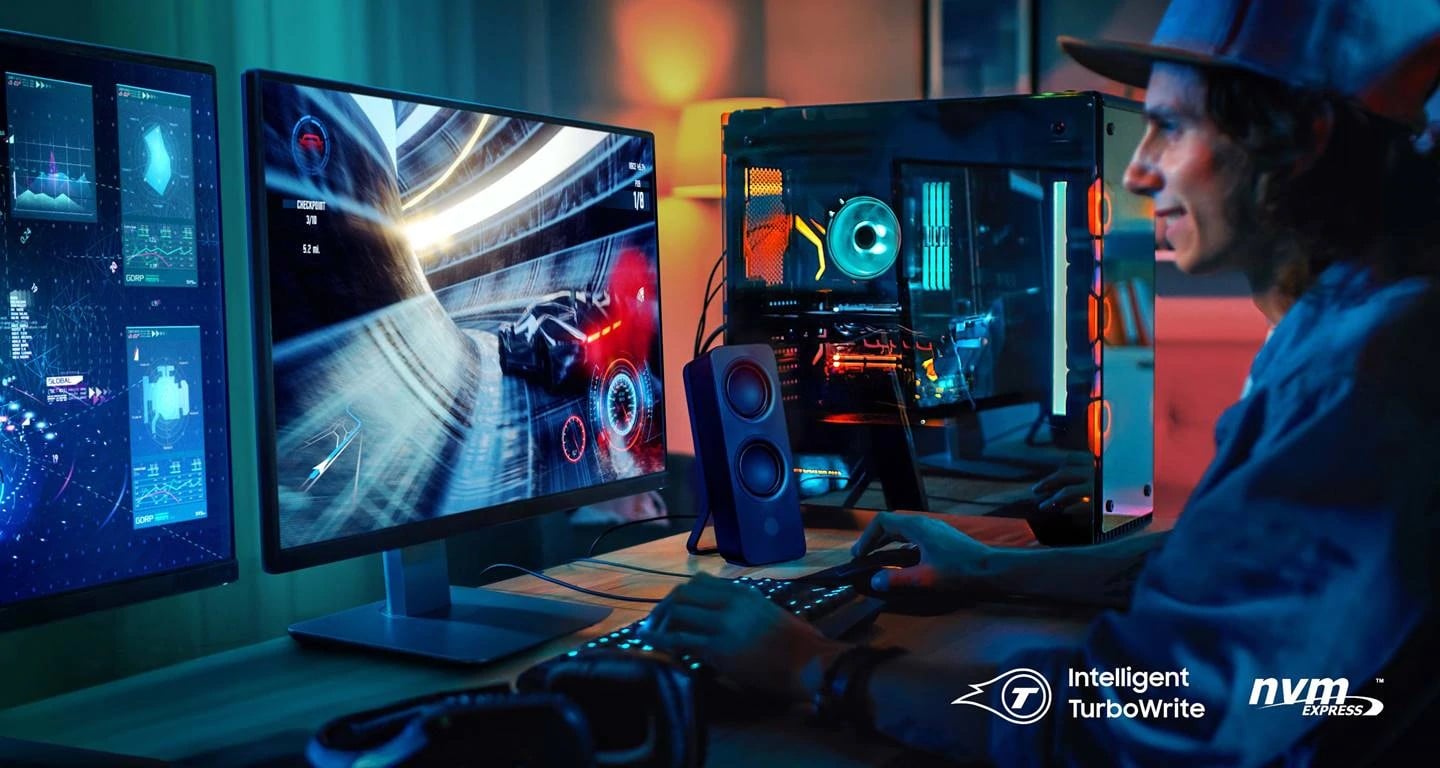 ![]() | Intelligent TurboWrite + Chuẩn giao tiếp NVMe1.3c Ổ cứng SSD Samsung 980 PRO PCIe NVMe M.2 2280 V-NAND được trang bị công nghệ Intelligent TurboWrite và chuẩn giao tiếp NVMe1.3c mới nhất, sự kết hợp của 2 công nghệ này mang đến hiệu năng cực khủng, hỗ trợ tối ưu nhất cho các game thủ chuyên nghiệp và người dùng đam mê công nghệ, cung cấp băng thông và hiệu suất rất cao cho các ứng dụng nặng về chơi game, đồ họa, phân tích dữ liệu, v.v. |