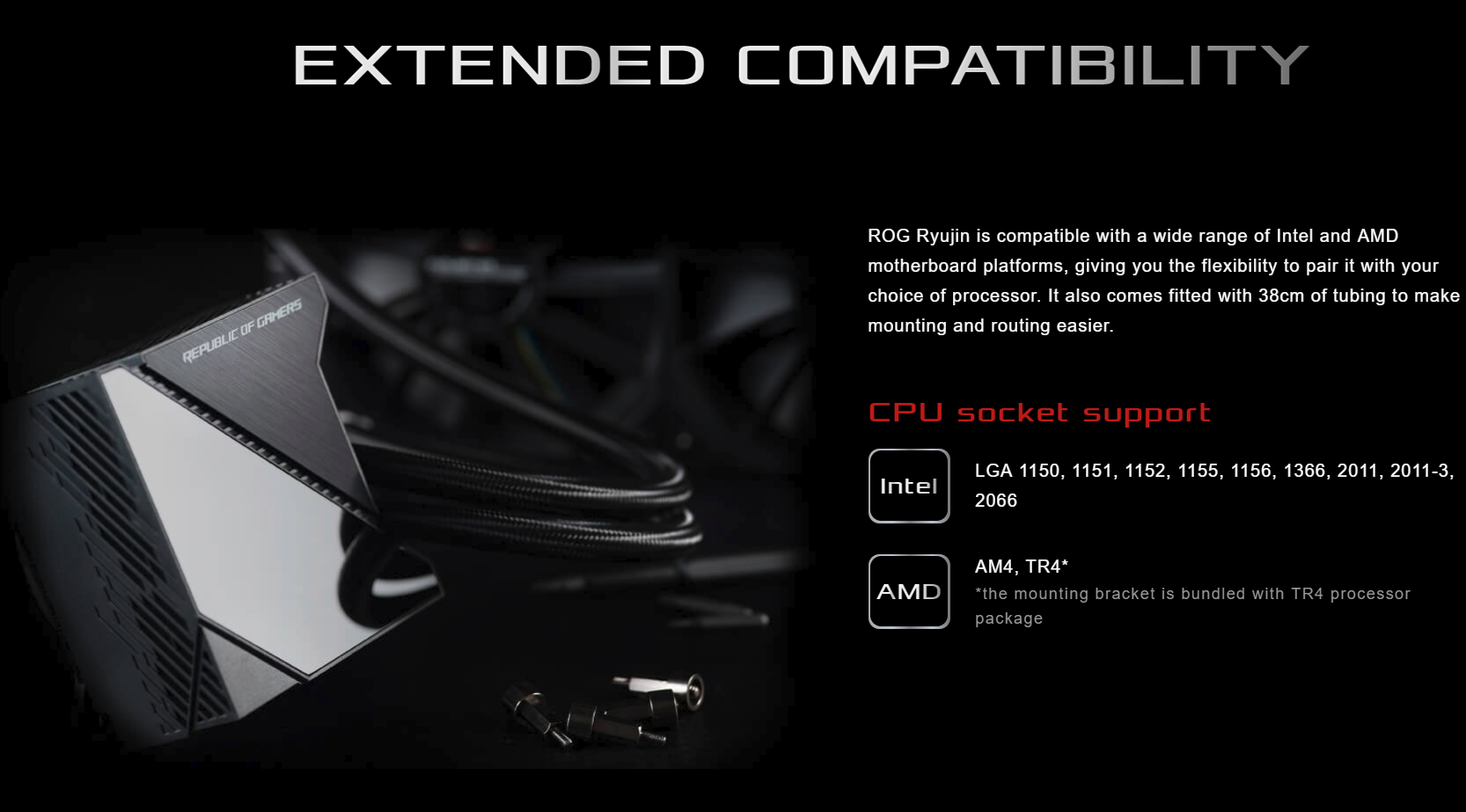 Mở rộng khả năng tương thích ASUS Ryujin hỗ trợ hầu hết các dòng socket CPU phổ thông hiện có trên thị trường.