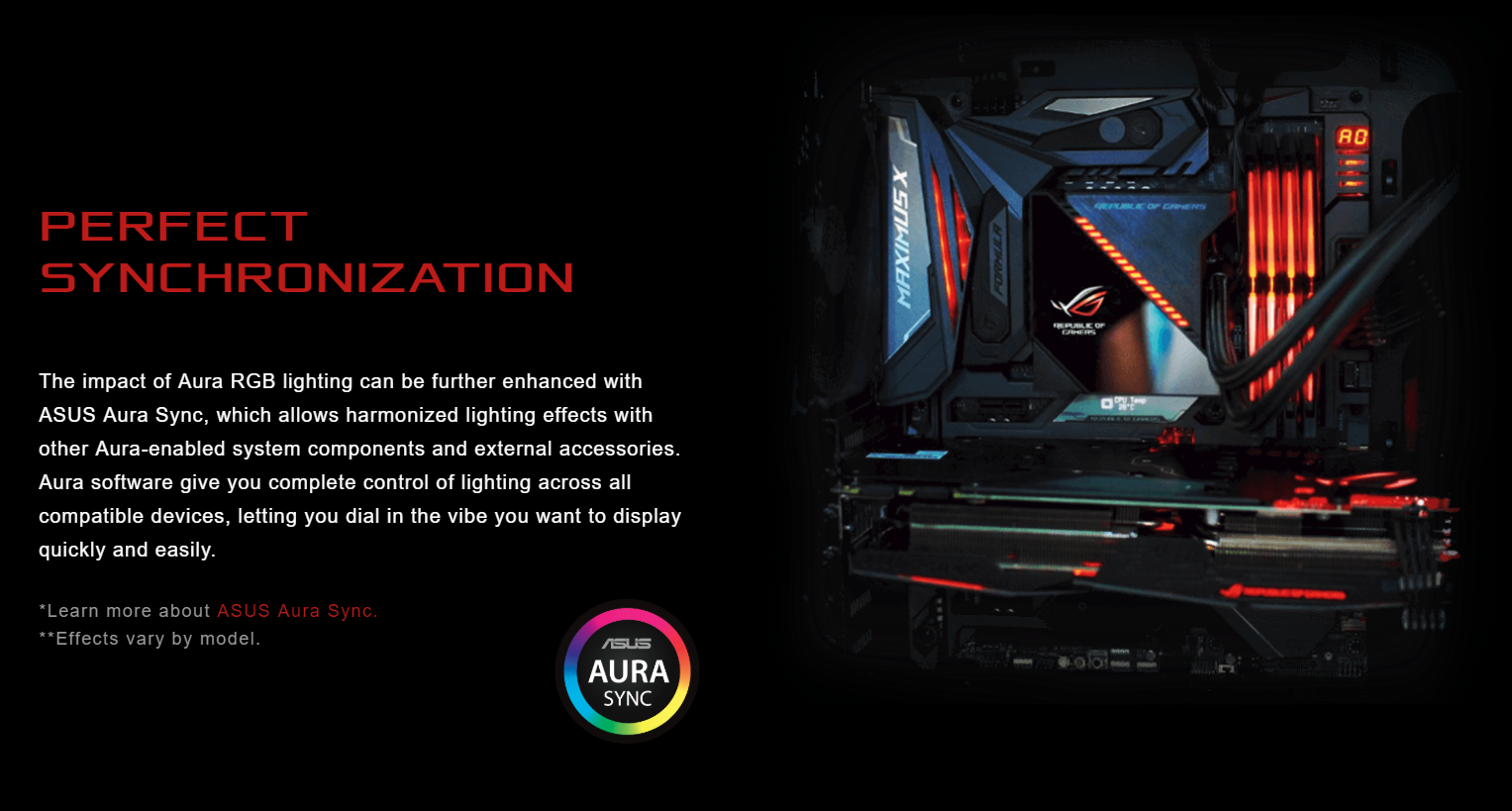 Khả năng đồng bộ hoàn hảo Với ASUS Aura Sync, toàn bộ hệ thống linh kiện sẽ đồng bộ với nhau đem đến sự tiện lợi, dễ dàng khi cài đặt, lắp ráp.
